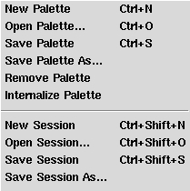 Palettes and Sessions via the File menu. |