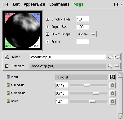 We've named this template "Smoothstep." The name used here must match the suffix of the function declared within the RSL source. We've also added a description. This will be visible to users inside of the Appearance Editor.