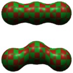 space. Coordinate blending between adjacent spheres stretches the