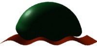 Most of prman's surface types have explicit control meshes. That is, the geometry is specified by a network of points in object space that are on or near the surface. RiBlobby surfaces are defined implicitly, by a continuous field functionF(x, y, z) that is equal to some threshold value T at every point on the surface. A simple example of an implicit-function surface is the well-known equation of the sphere with center at the origin and radius D, which is x2+y2+z2=D2The only serious problem with using this equation to represent a sphere is that since F gets large as we move away from the origin, it's hard to combine this with other spheres in any meaningful way. RiBlobby gets around this by using a slightly different field function that is 1 at the origin and goes to zero at some finite distance. If we write R2=x2+y2+z2, the function is